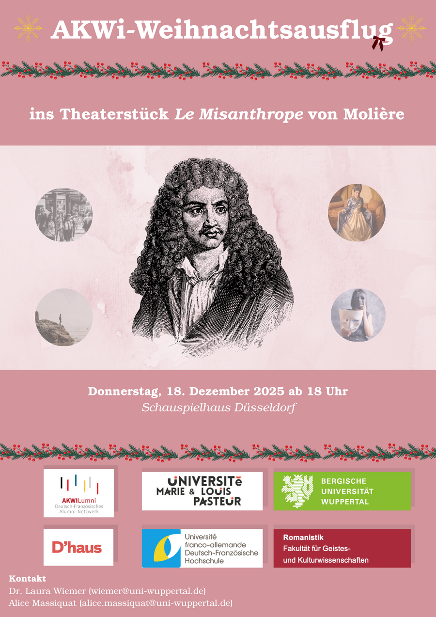 Sie sind alle zum Ausflug eingeladen! Die Eintrittskarte besorgt das AKWi-Team für Sie und die Kosten übernimmt die Universität. Melden Sie sich bitte verbindlich bis zum 18.11. per Mail bei Dr. Laura Wiemer an (wiemer@uni-wuppertal.de).