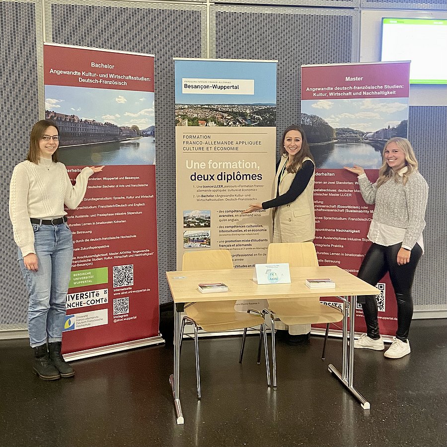 Das Team der binationalen Studiengänge AKWi und AKWiNa hat als Aussteller am International Day "Von der Wupper in die Welt" am 20.11.2024 teilgenommen, um die Double Degree-Programme in Kooperation mit der Université de Franche-Comté in Besançon am Doubs vorzustellen.