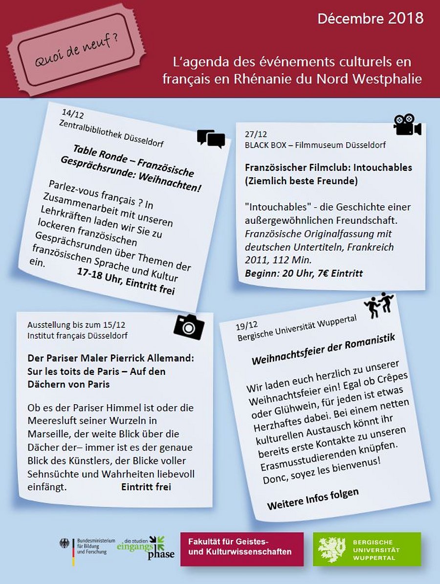 L'agenda des événements culturels en français en Rhénanie du Nord Westphalie
