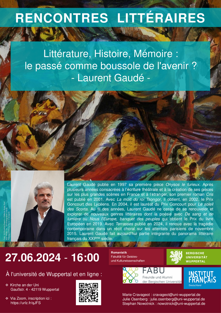 Rencontre littéraire mit Laurent Gaudé am 27.06. um 16 Uhr